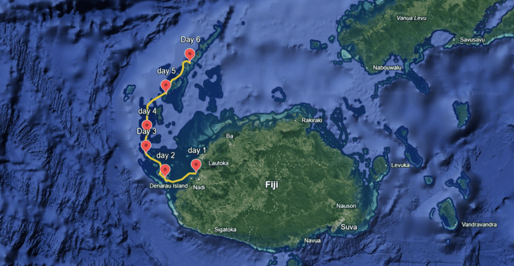 A six-day journey through Fiji’s most iconic cruising grounds, combining the Mamanuca and Southern Yasawa Islands. Calm anchorages, vibrant reefs, and uninhabited islands define this balanced, year-round itinerary.